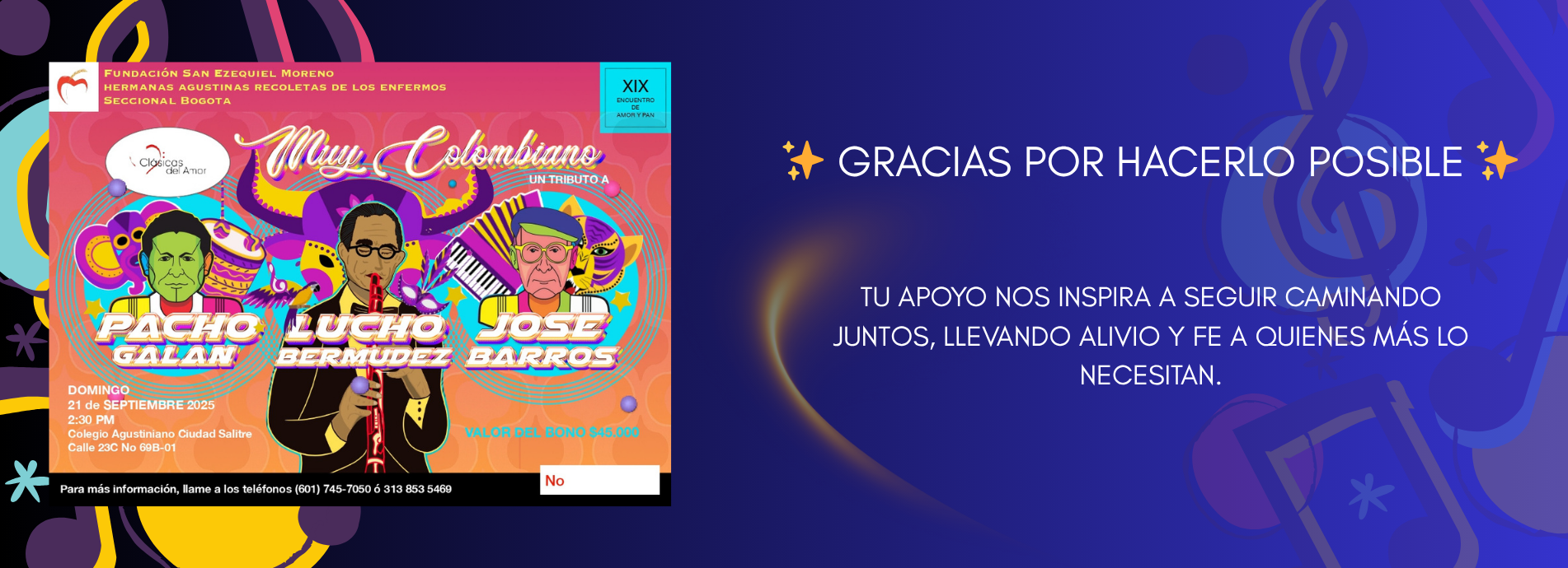 Deseamos expresar nuestros más sinceros agradecimientos a los benefactores que continúan apoyando esta Obra de Dios, permitiéndonos llevar “AMOR Y PAN” a los enfermos, quienes afrontan cada día con valentía las dificultades propias de su condición.